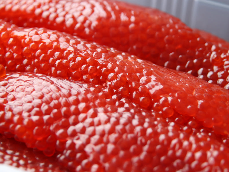 | 原材料 | 紅鮭卵(アメリカ産)、醤油、食塩、米醗酵調味料、魚介エキス、還元水飴/調味料(アミノ酸等)、酸化防止剤(V.C)、着色料(赤102、黄5)、発色剤(亜硝酸Na)、(一部に小麦・いくら・大豆・さばを含む) |